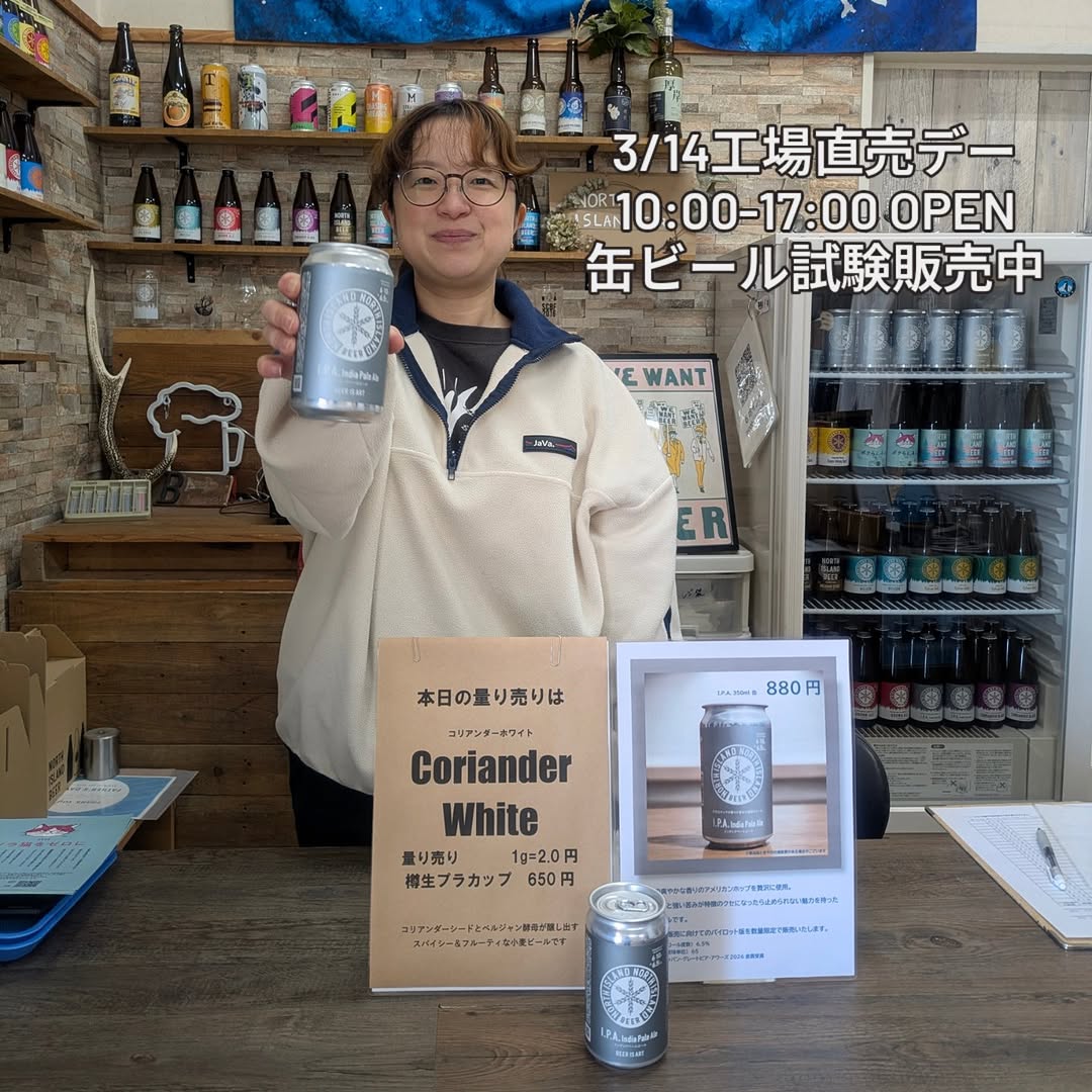ノースアイランドビール江別工場、3月14日直売デーで「コリアンダーホワイト」を量り売り