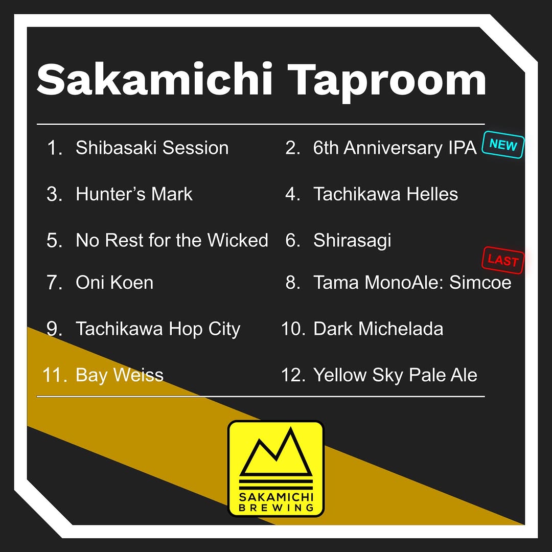坂道ブルイングが週末タップリスト公開、立川で最新提供へ