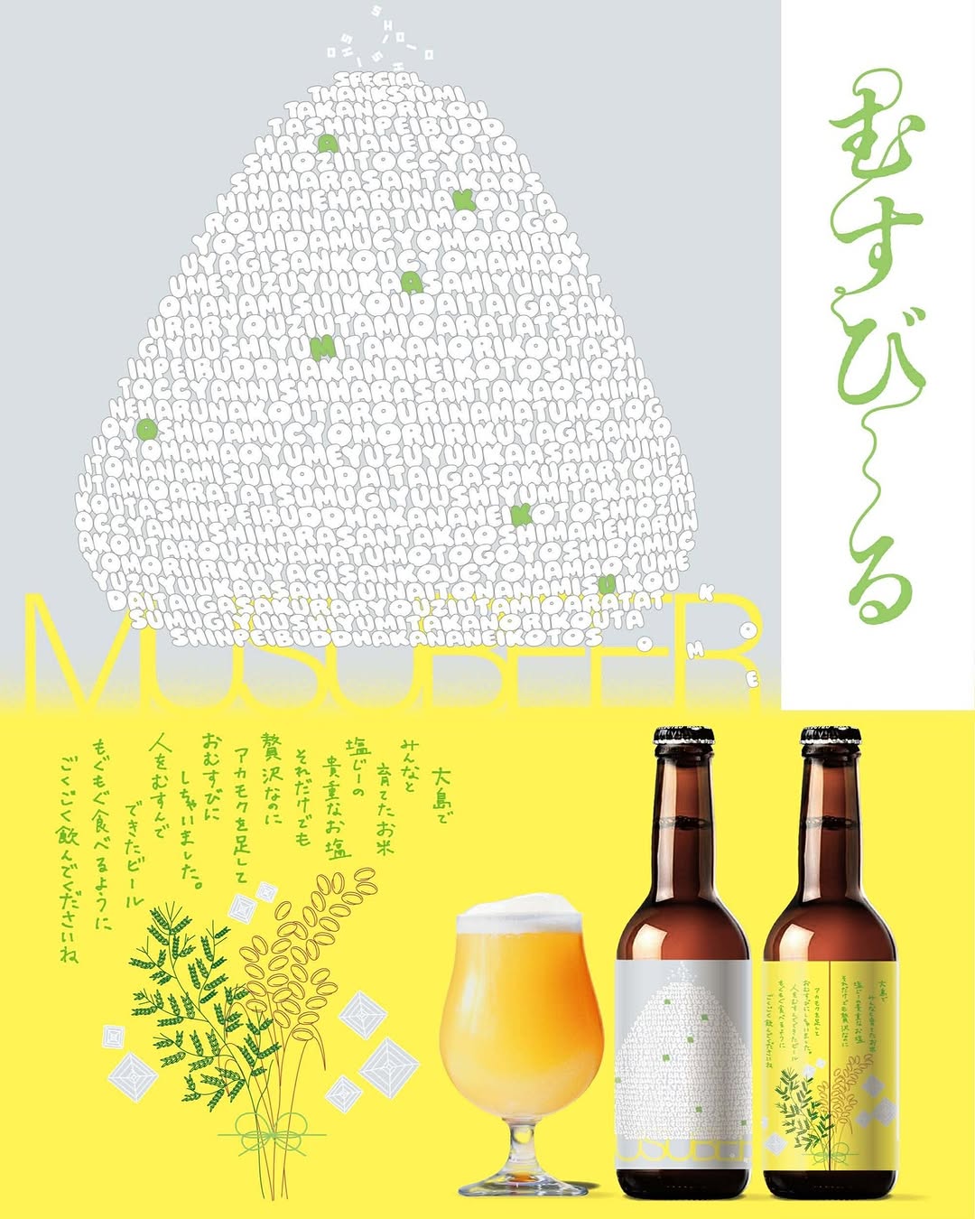 ひのさとブリュワリーが新作「むすびーる」を発売、米と塩で年末を表現