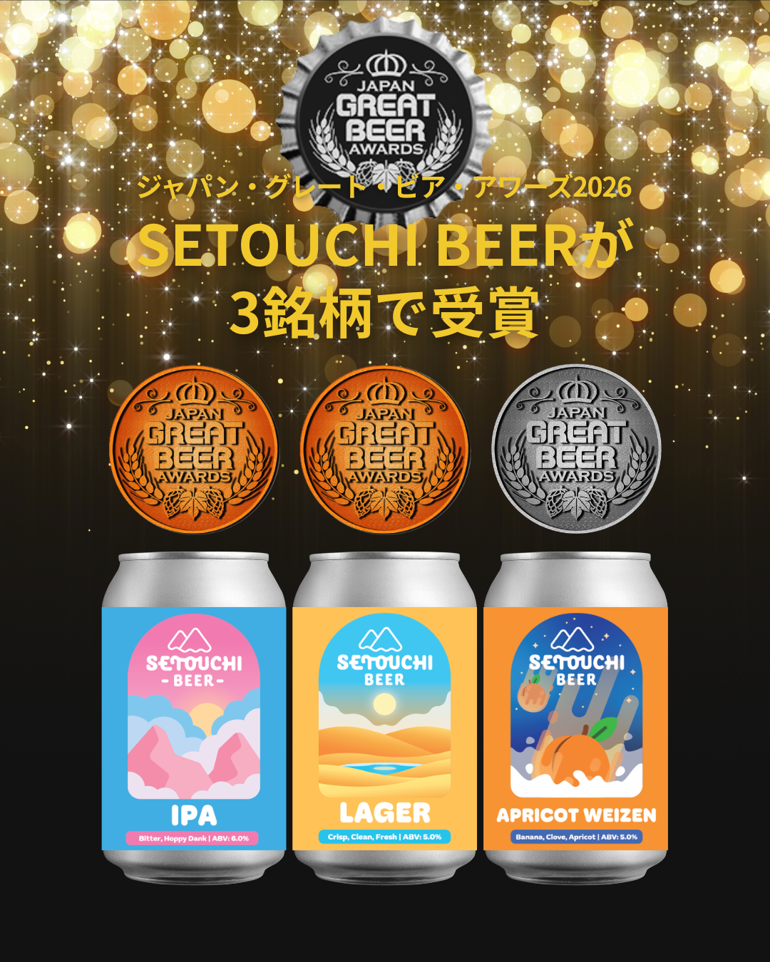 せとうちブルワリー、JGBA2026で3銘柄受賞 定番2種が銅賞、限定1種が銀賞