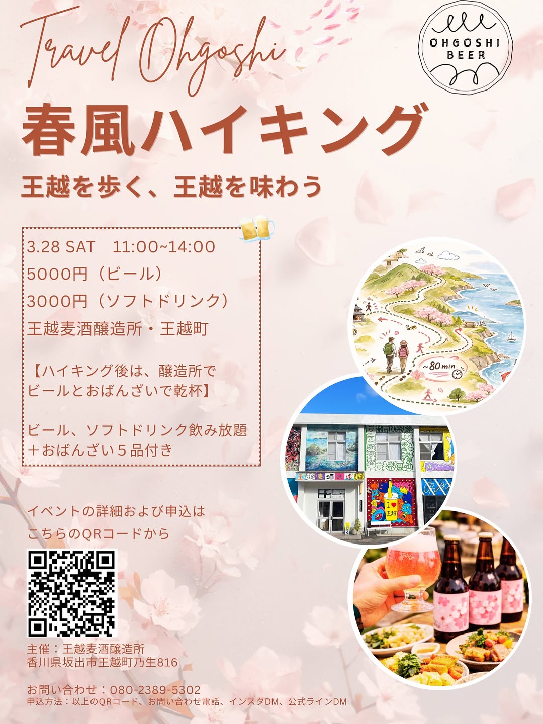 王越麦酒醸造所、3月28日に「春風ハイキング」開催 桜とビールを満喫