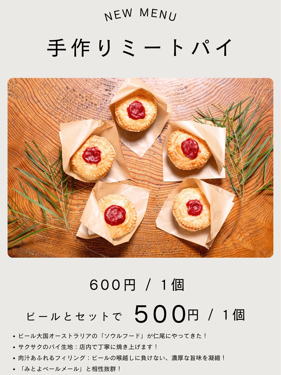 コーキ・ブルーイング・ミトヨ、限定20個の手作りミートパイを提供へ