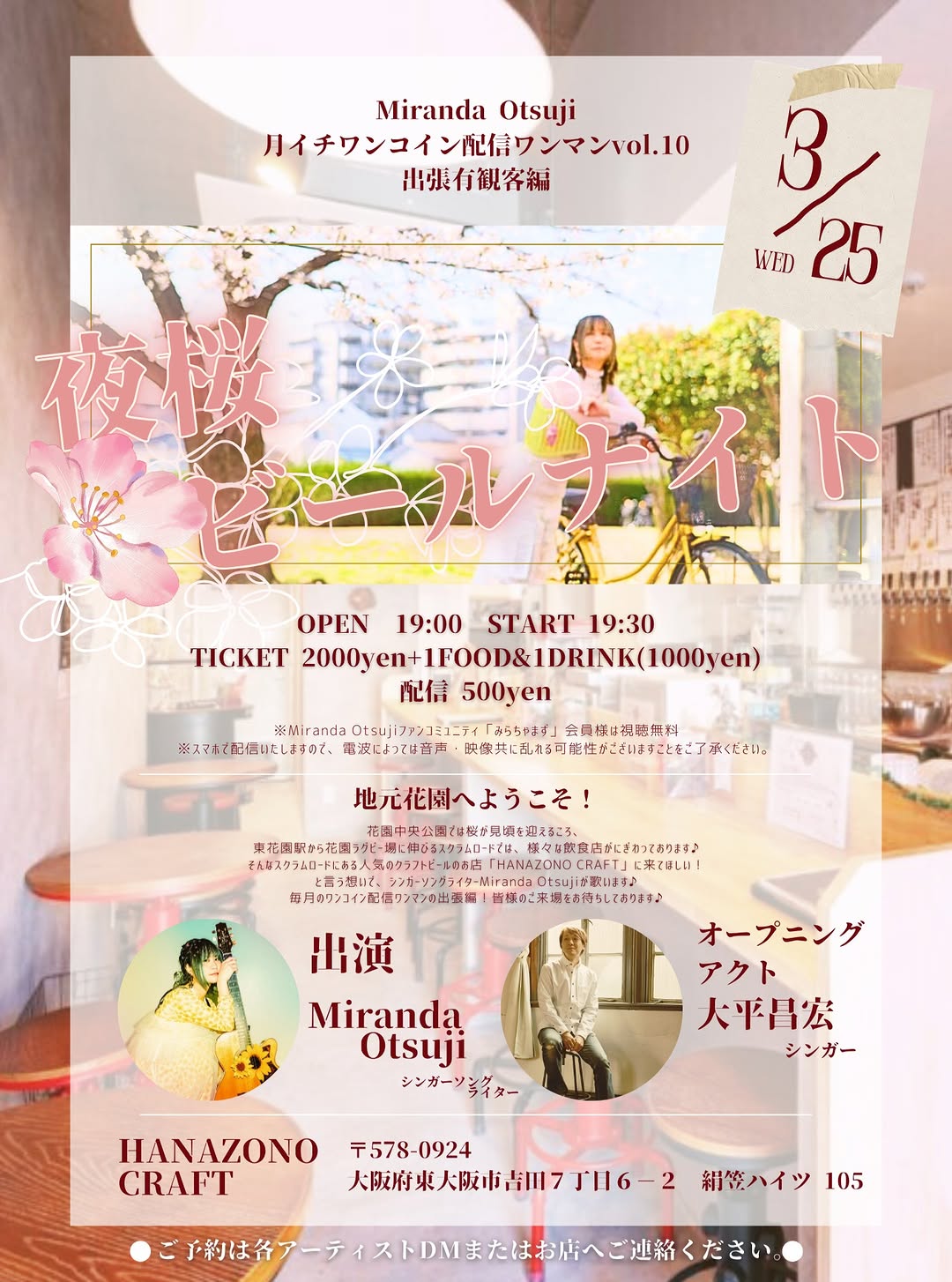 花園クラフト、3月25日19時開場「夜桜ビールナイト」開催 生ライブも実施