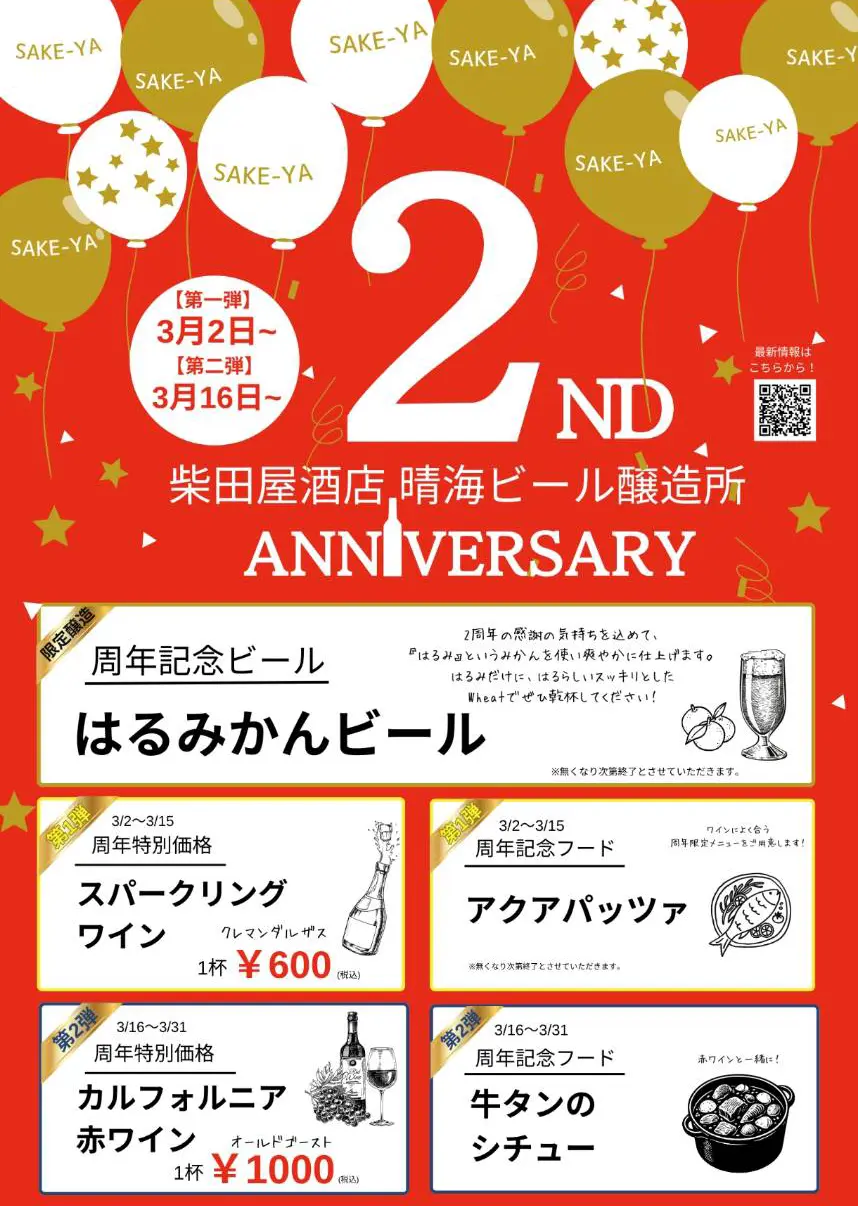 晴海ビール醸造所、3月末まで2周年イベント限定醸造と特別企画を実施