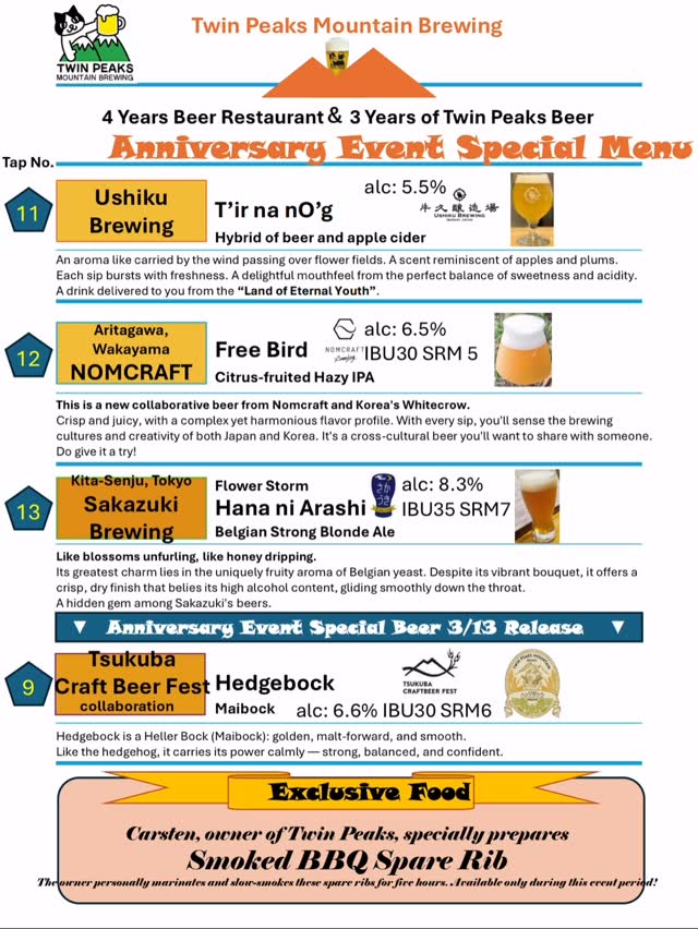 坂道ブルイングが週末タップリスト公開、立川で最新提供へ