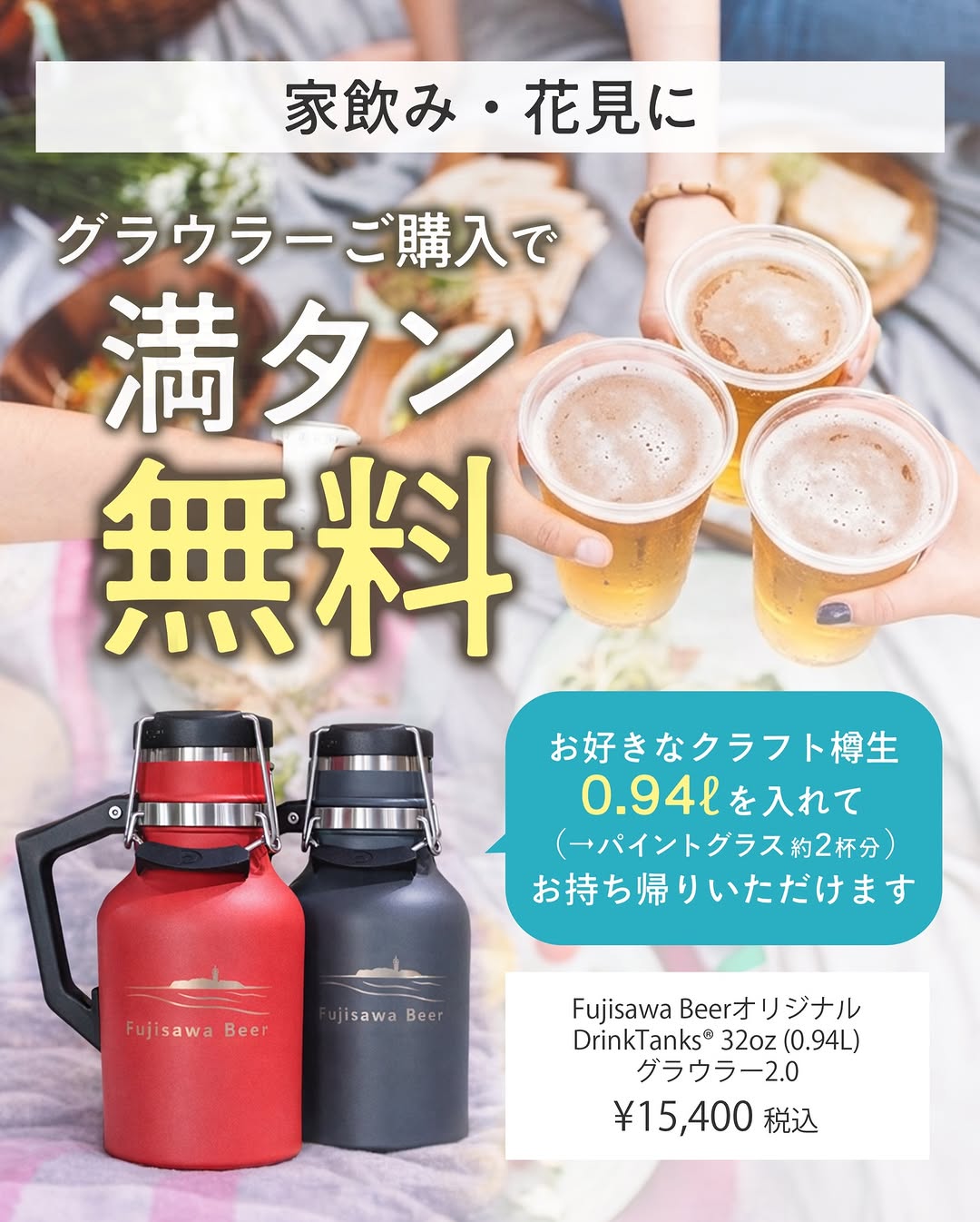 藤沢ビール、グラウラー購入で0.94L満タン無料提供を実施